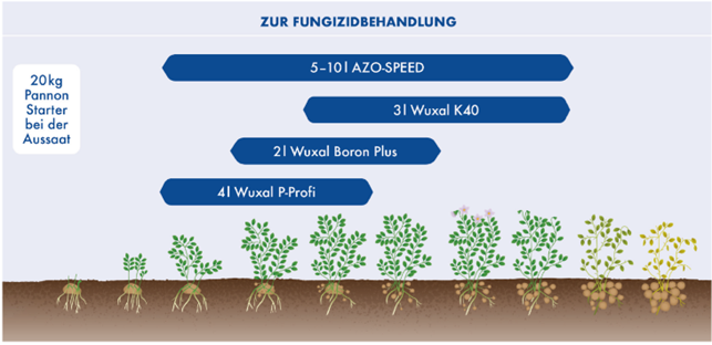 Um hier den Wasserhaushalt der Pflanze zu optimieren und das volle Ertragspotential auszuschöpfen, empfehlen wir die Blattdüngung mit Kalium.