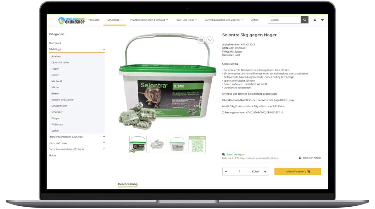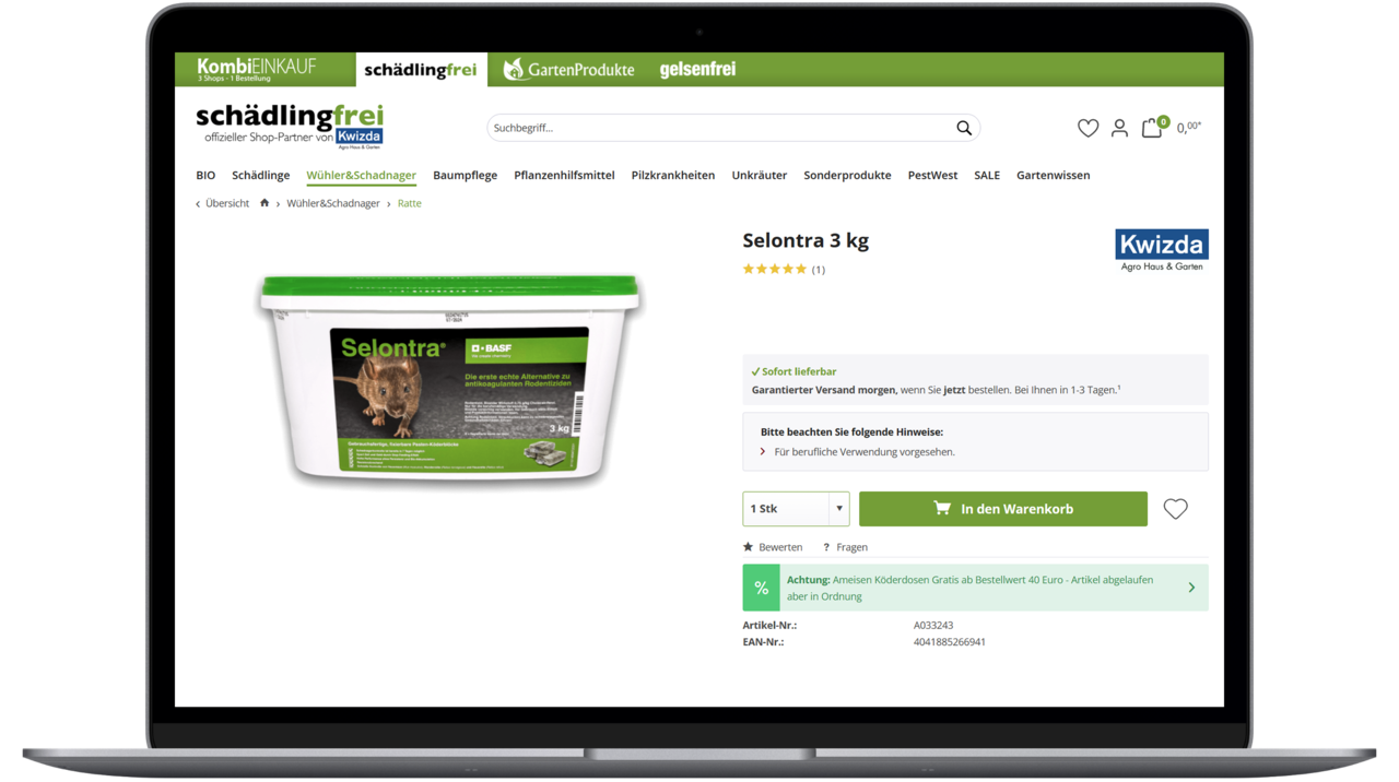 Oder bestellen Sie Selontra® direkt bei unseren Online-Shop-Partnern und schützen Sie mit diesem innovativen Rodentizid Ihren Betrieb!