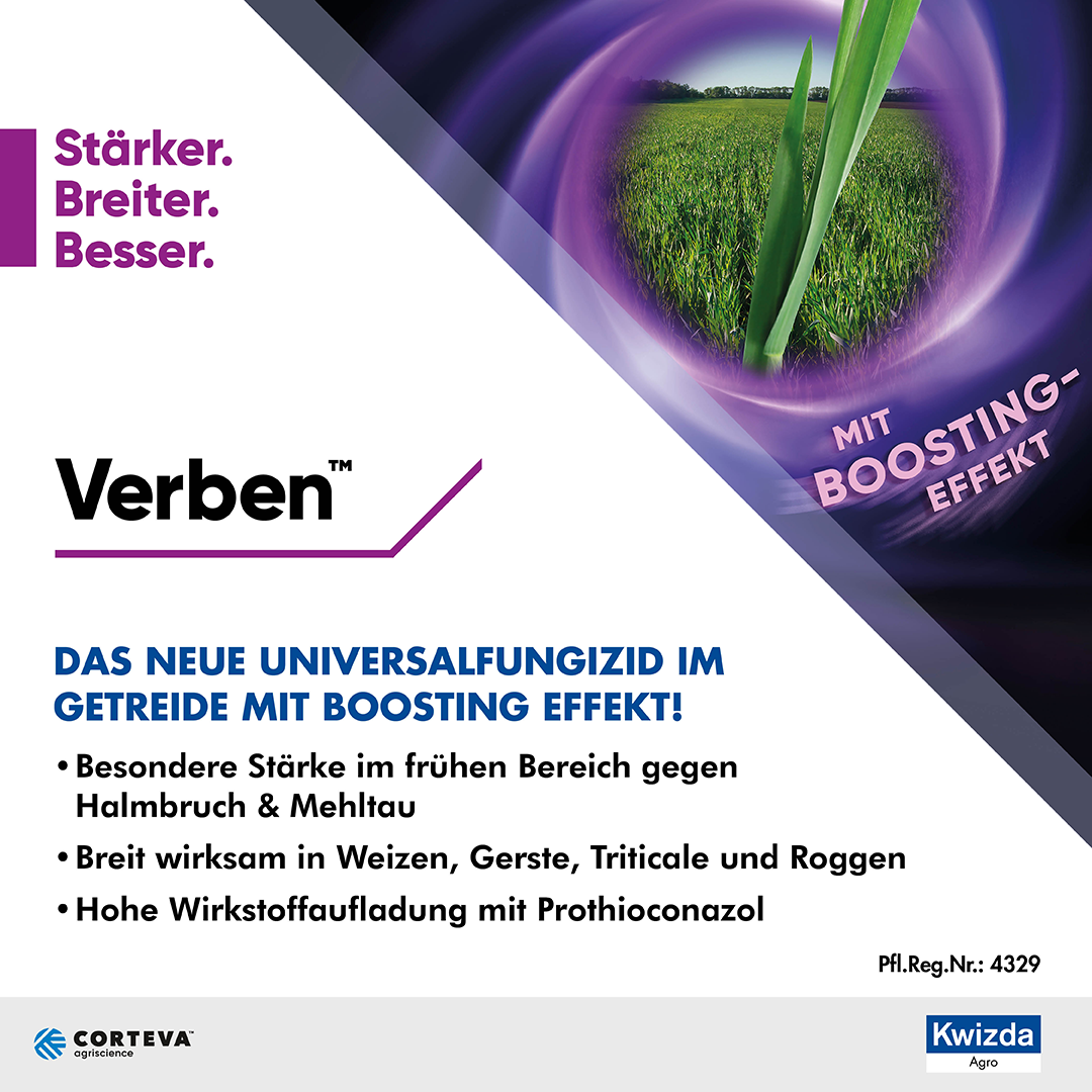 Verben ist das neue Universalfungizid im Getreide mit Boosting Effekt! Mit dem Wirkungsplus gegen Mehltau, Halmbruch und vielen anderen Krankheiten.