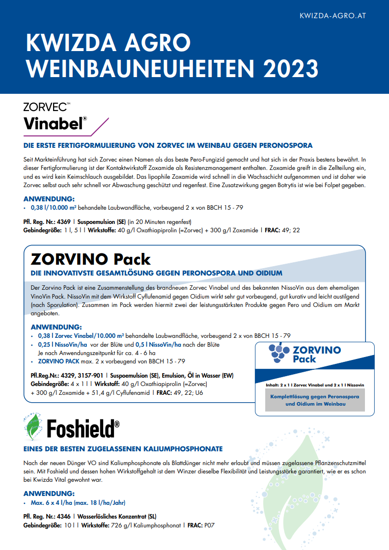 Mit Foshield und dessen hohen Wirkstoffgehalt ist dem Winzer dieselbe Flexibilität und Leistungsstärke garantiert, wie er es schon bei Kwizda Vital gewohnt war.